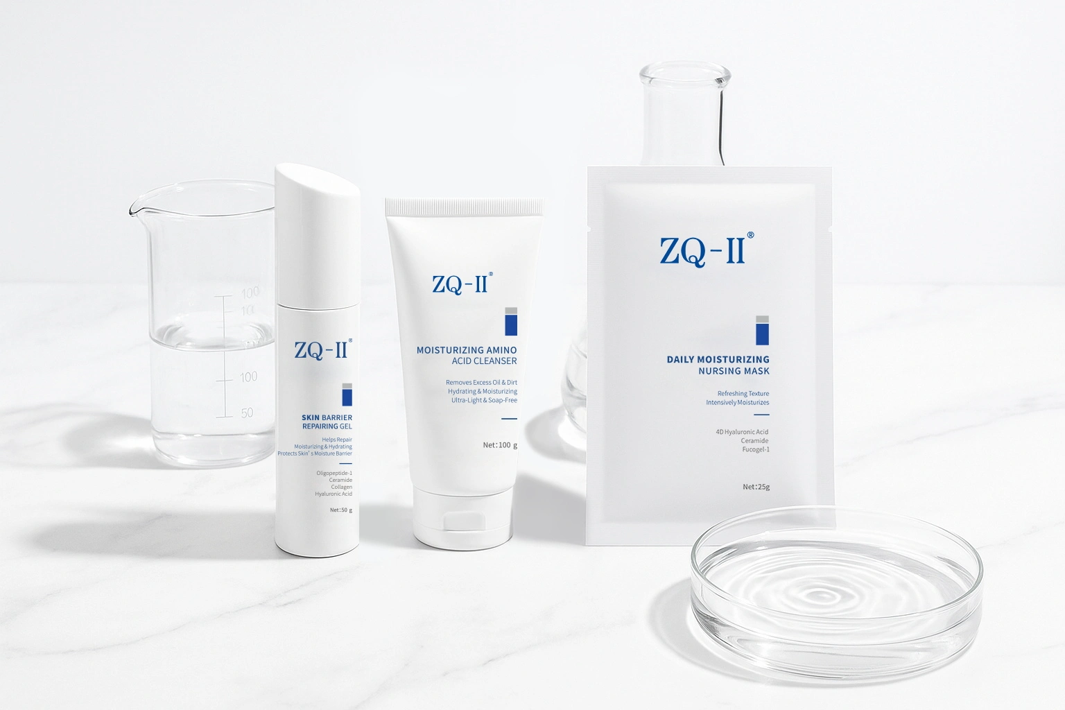 Hos ZQ-II tilbyr vi multifunksjonelle produkter designet for å imøtekomme hudens kjernebehov uten unødvendig kompleksitet: