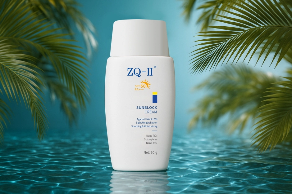 Det er derZQ-II sunblock-kremkommer inn. Denne avanserte fuktighetsgivende solkremen er spesielt formulert for bredspektret beskyttelse (SPF50 +++), og beskytter huden din fra både UVA og UVB-stråler. Med aktive ingredienser som sinkoksid og titandioksid, gir det en fysisk barriere som reflekterer skadelig stråling, og forhindrer hudskader før den til og med begynner.