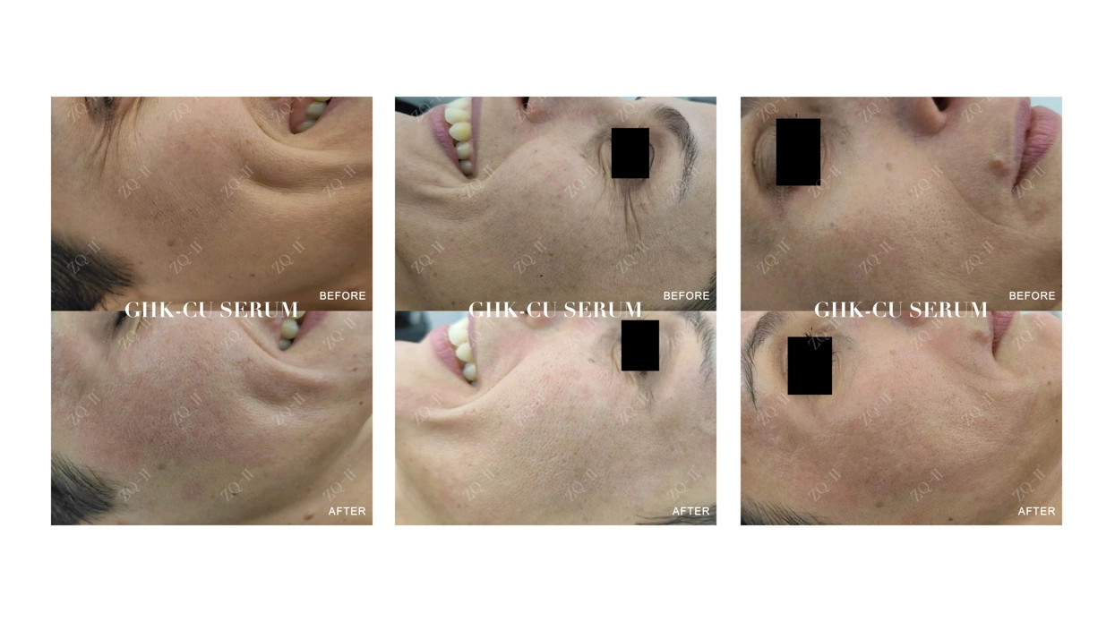Kobberpeptider er som hudpleie. De fastsetter, reparerer og beskytter, gir deg den livlige, ungdommelige gløden. Jada, de er en investering, men de er absolutt verdt det. En tysk kunde opplevde bemerkelsesverdig hudforbedring etter å ha gjennomgåttZQ-II GHK-Cu-serumBrukes med en 0,5 mm mikrone -rull. De umiddelbare resultatene viste frem synlig fastere, jevnere hud med en merkbar reduksjon i fine linjer og rynker, som sett i sammenligningen før og etter. Hvis du ønsker å oppleve magien med kobberpeptider,ZQ-II GHK-Cu-serumer ditt endelige valg for å oppnå synlig forynget og levende hud.