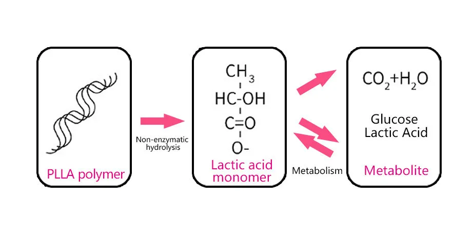 PLLA er det eneste resorberbare fyllstoffet som for tiden er på markedet som er godkjent av FDA som varer opptil 25 måneder. Det er ikke-giftig, ikke-irriterende, biologisk nedbrytbar, delta i menneskelig metabolisme, kan bli fullstendig degradert til CO2 + H2O i menneskekroppen.
